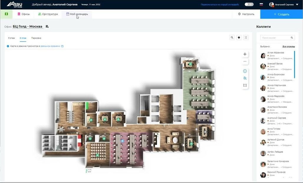 Благодаря глубокой интеграции с календарями Merusoft Smart Office делает процесс бронирования переговорных комнат и рабочих мест максимально удобным и прозрачным, экономя время сотрудников и повышая эффективность использования офисного пространства.